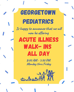 Welcome to the Georgetown Pediatrics Web Site. This site is designed to provide current patients with important information concerning our practice, and to give potential patients a chance to review our practice.